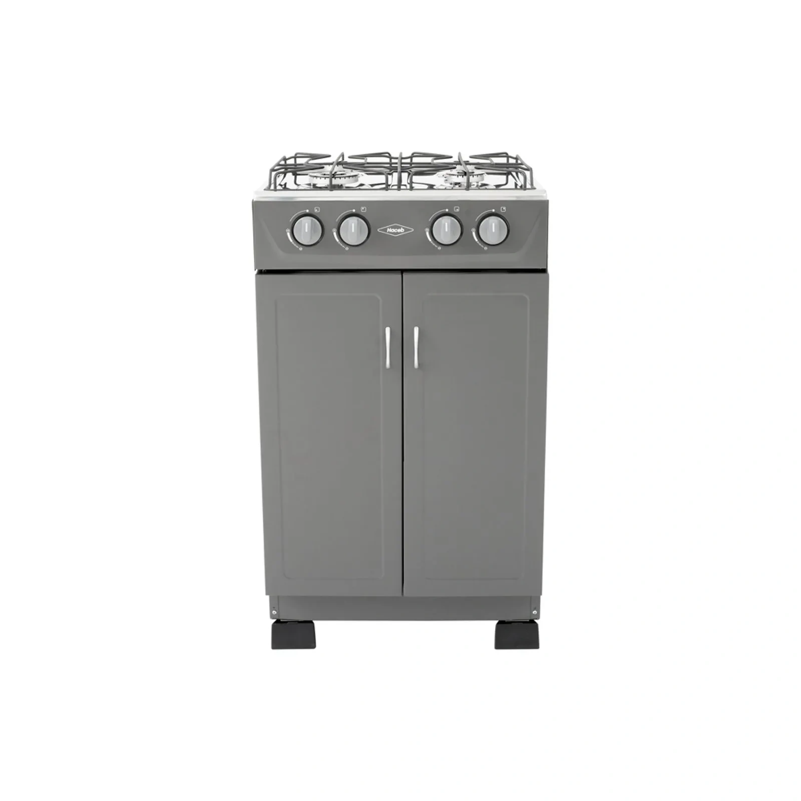 Amplio gabinete,parrillas en alambrón, zona de encharque, compartimiento multiusos, fuentes de calor en diferentes tamaños, versátil.