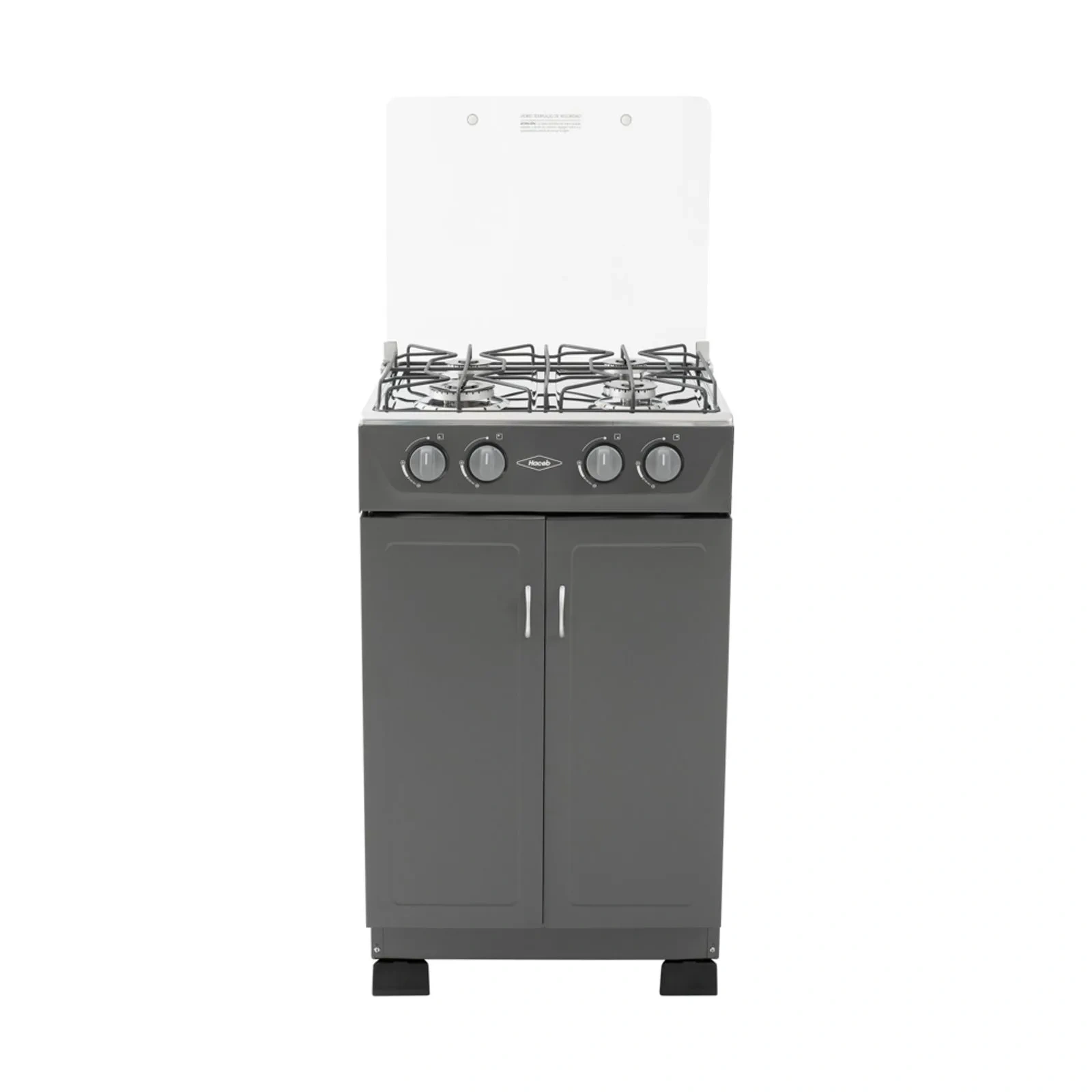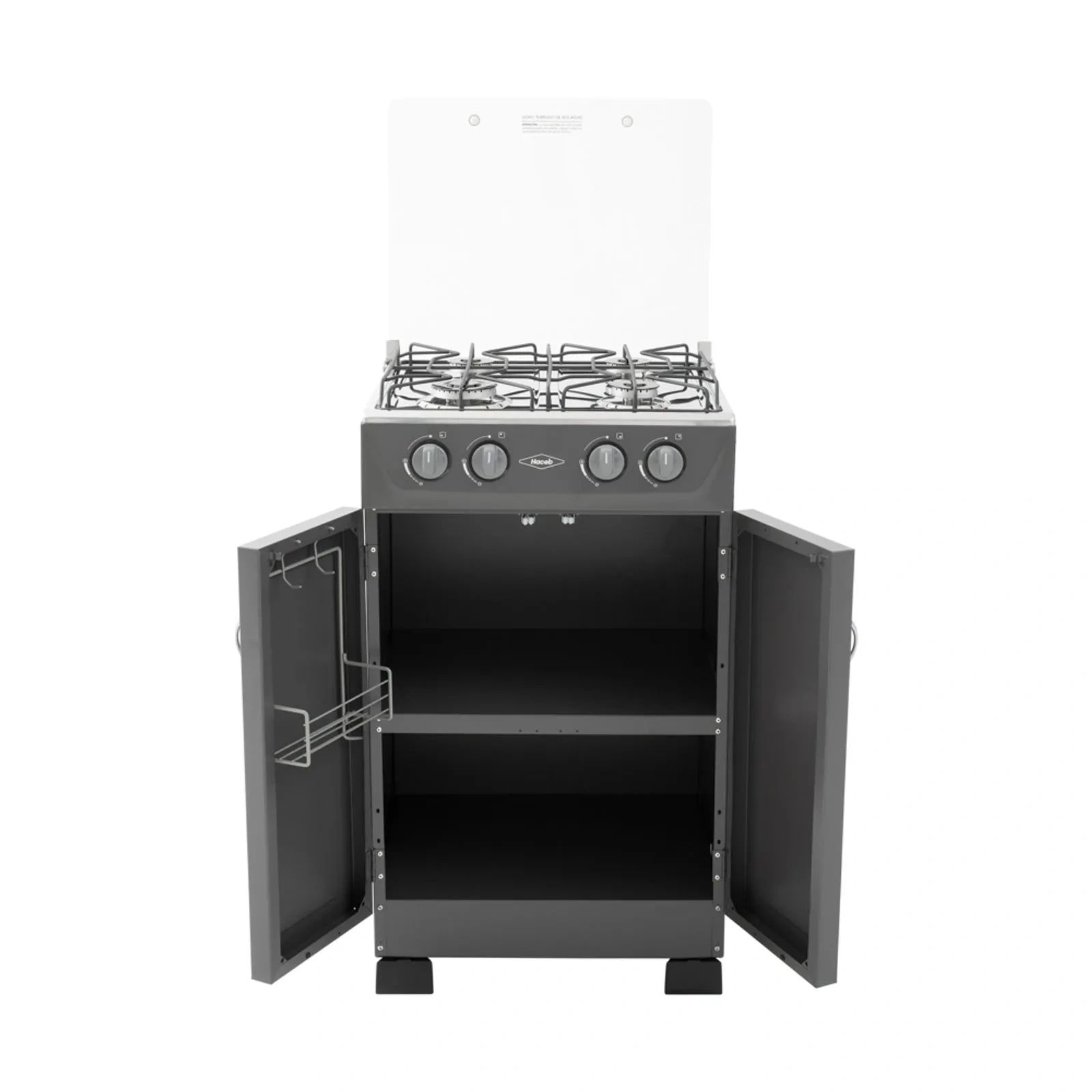 Amplio gabinete,parrillas en alambrón, zona de encharque, compartimiento multiusos, fuentes de calor en diferentes tamaños, versátil.