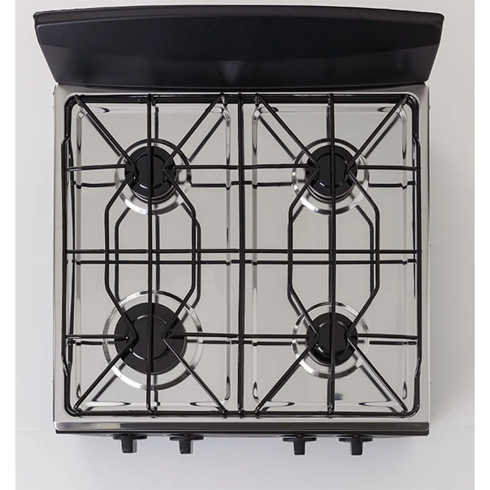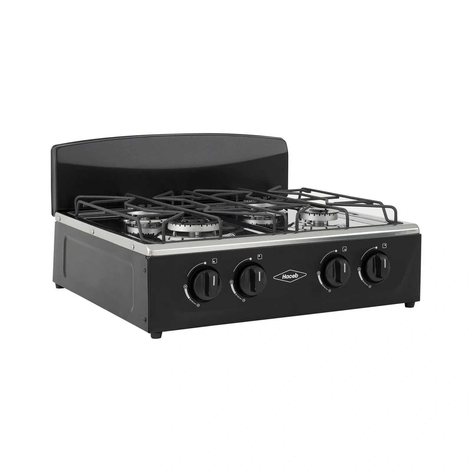 Espaldar de torre, estructura inferior robusta, fuentes de calor con diferentes tamaños,parrillas en alambrón con puntos de apoyo óptimos, amplia mesa en acero inoxidable,perillas ergonómicas con diseño único y fáciles de manejar