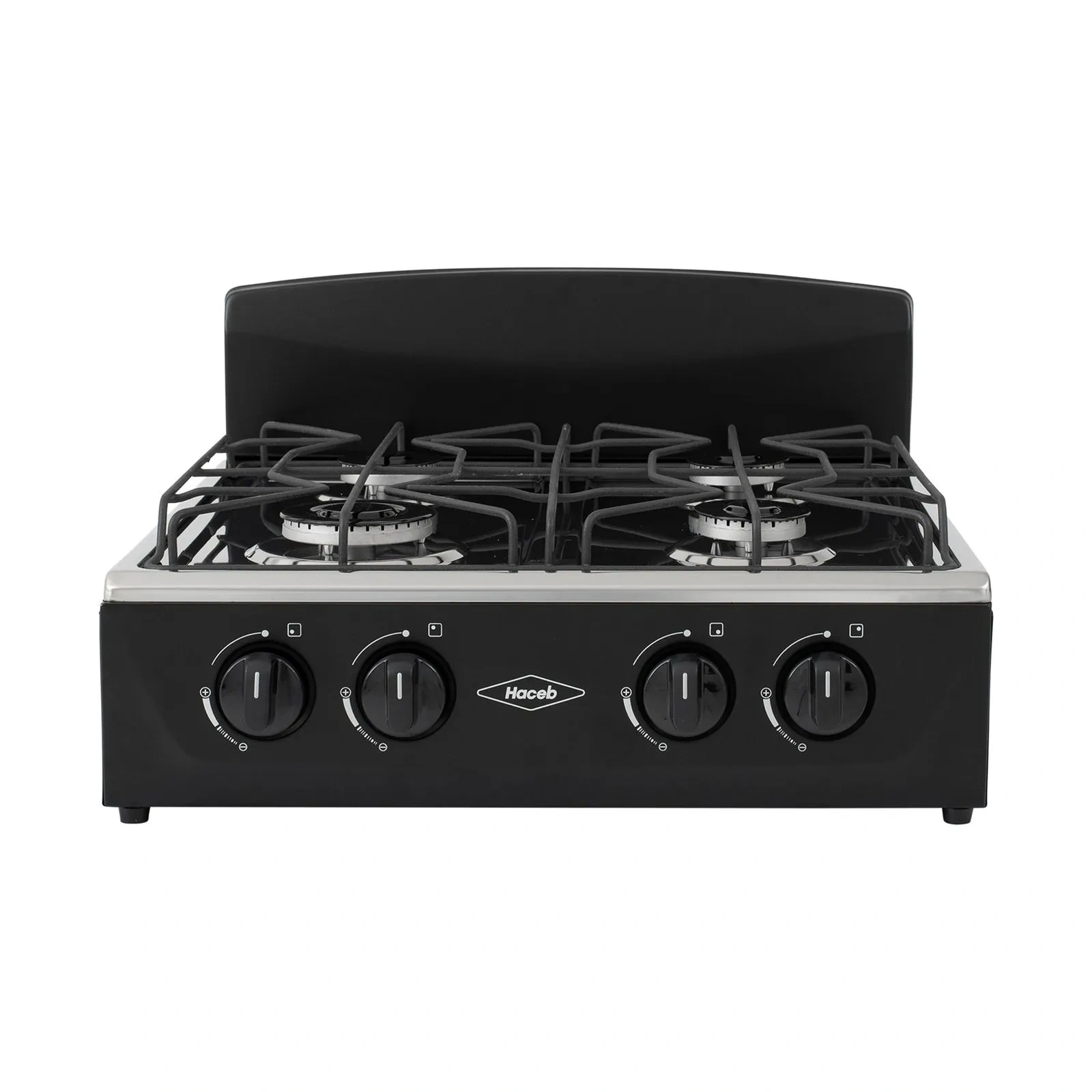 Espaldar de torre, estructura inferior robusta, fuentes de calor con diferentes tamaños,parrillas en alambrón con puntos de apoyo óptimos, amplia mesa en acero inoxidable, encendido eléctrico,perillas ergonómicas con diseño único y fáciles de manejar