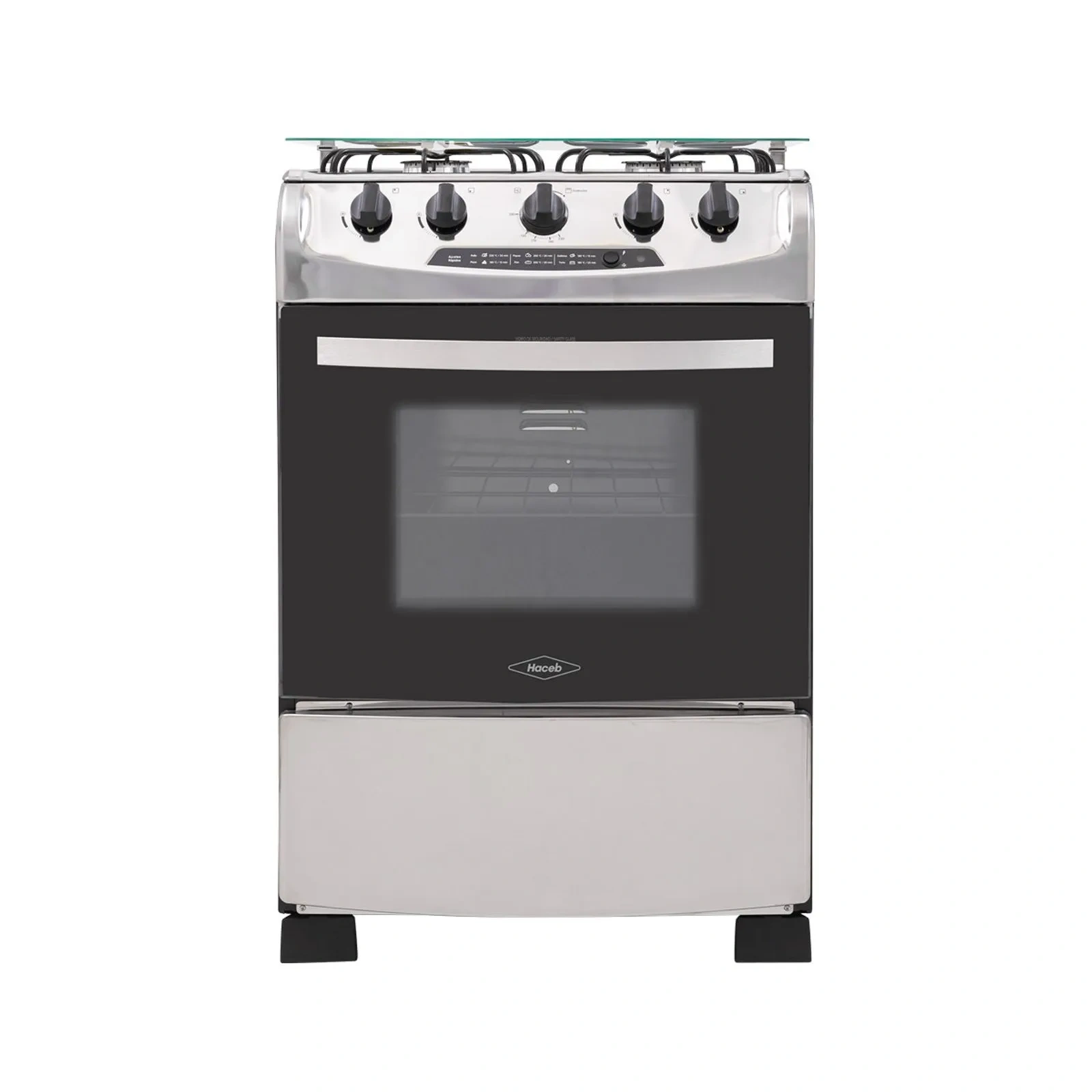 Vidrio templado superior, combinación acero inoxidable brillante y negro, encendido eléctrico en mesa,parrillas con recubrimiento mate,perillas ergonómicas y robustas,puerta del horno desmontable, gratinador eléctrico en curvas,puerta del horno con visor amplio, keypad con recetario, interbloqueo y termoseguridad en el horno.