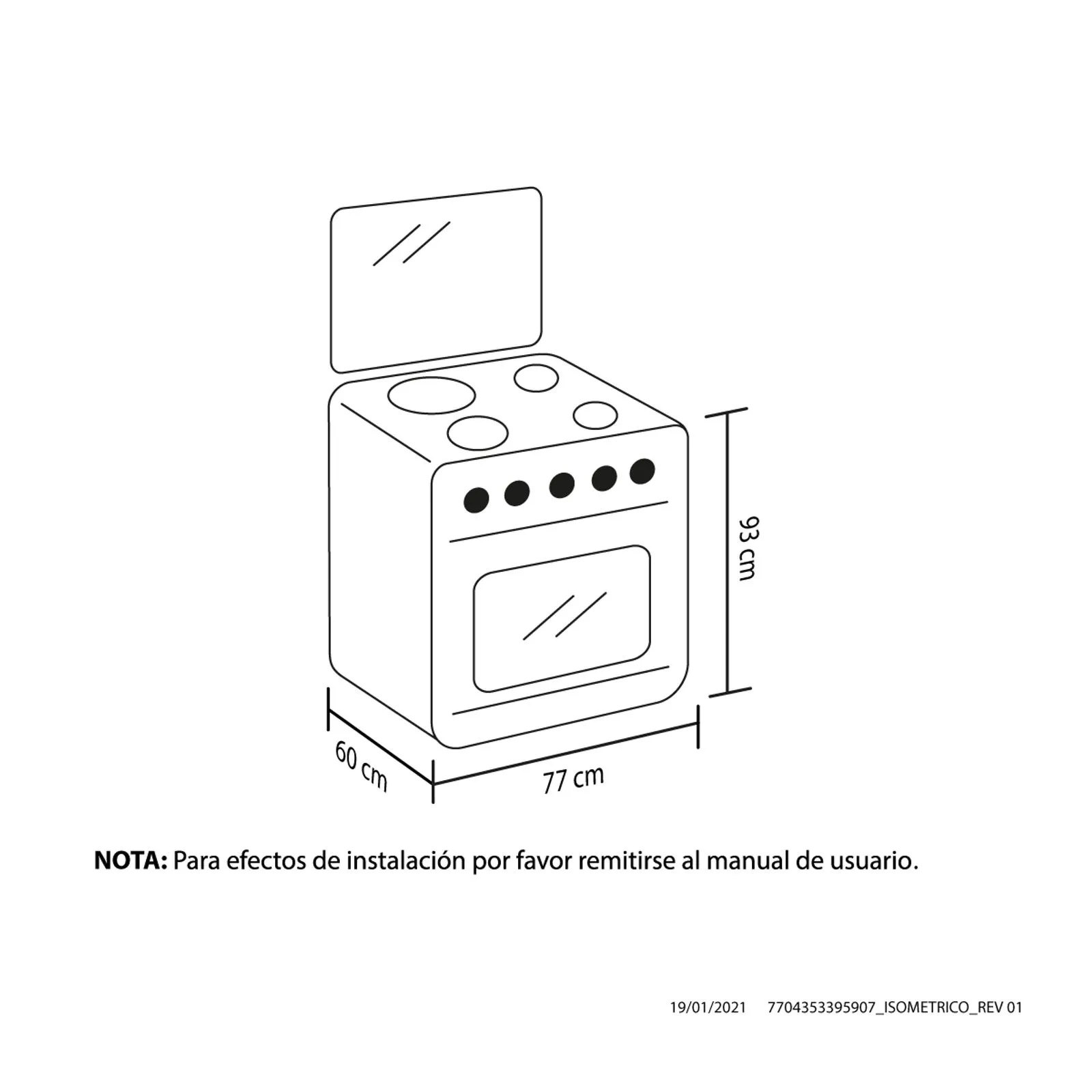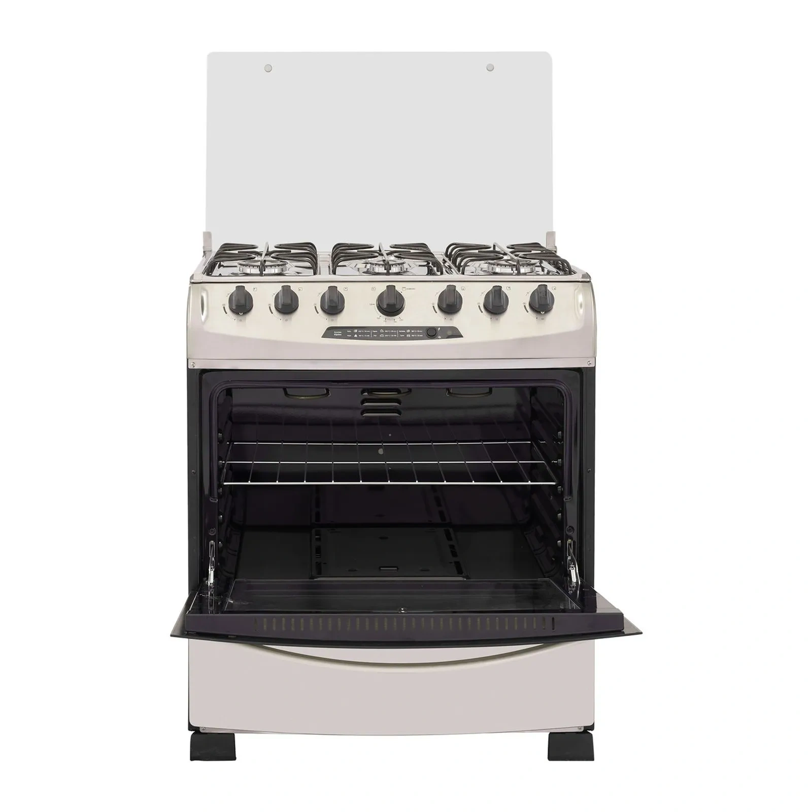 Combinación acero inoxidable brillante y negro, encendido eléctrico en mesa,parrillas con recubrimiento mate,perillas ergonómicas y robustas,puerta del horno desmontable, gratinador eléctrico en curvas,puerta del horno con visor amplio, keypad con recetario, interbloqueo y termoseguridad en el horno.