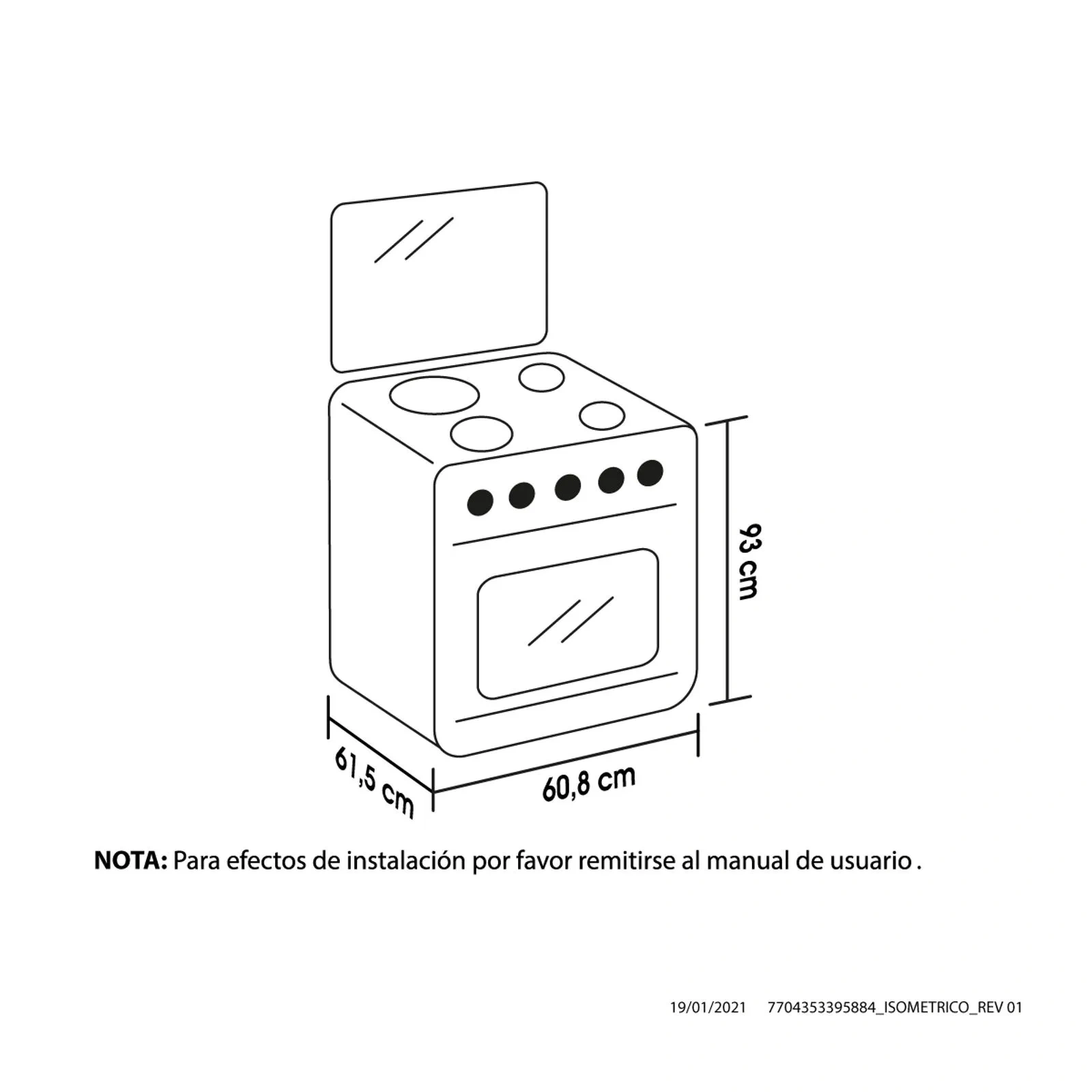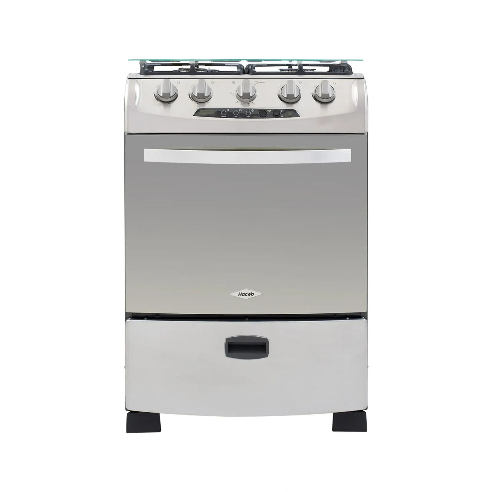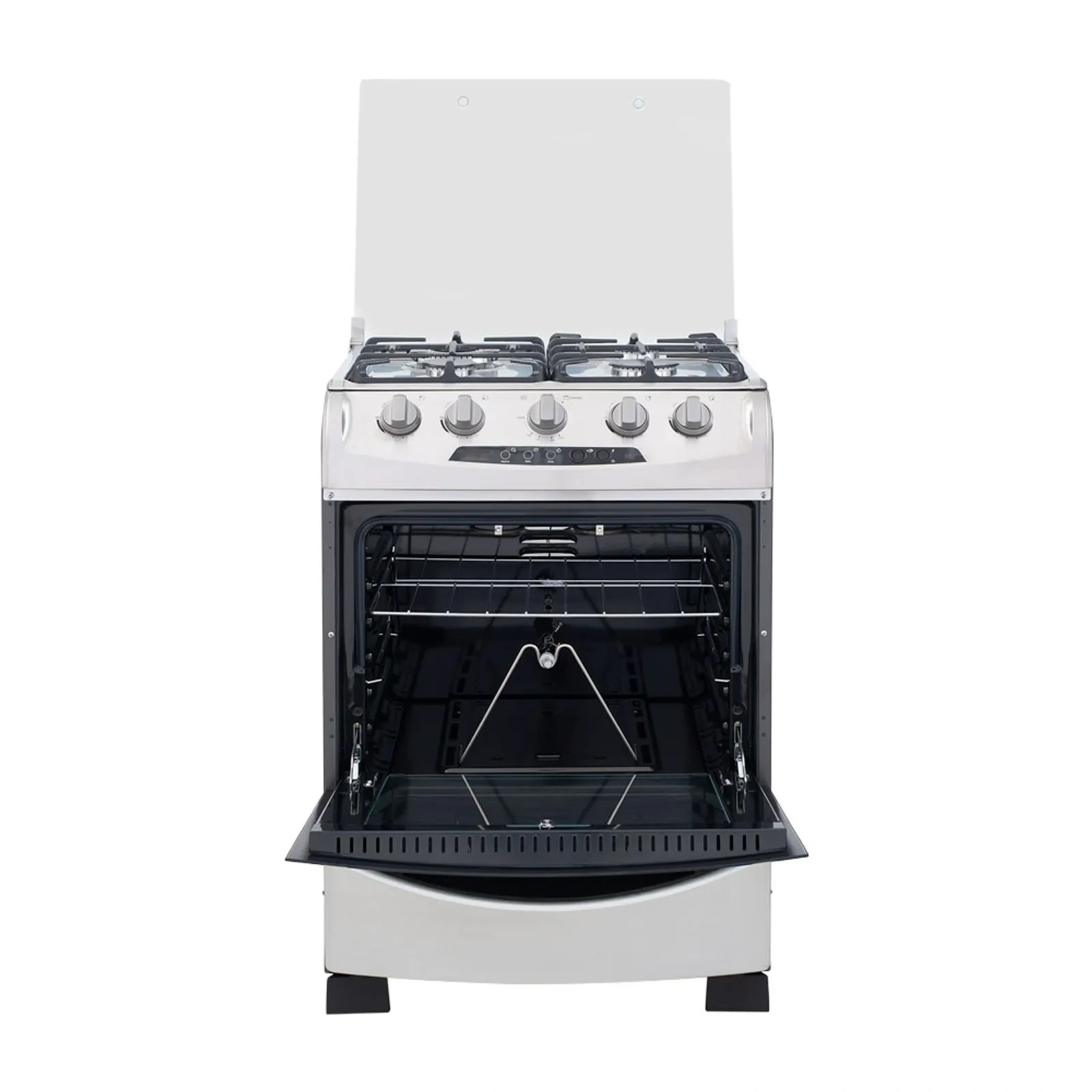 Acero inoxidable texturizado,parrillas en hierro fundido, quemador doble llama, encendido automático en mesa y eléctrico en horno,perillas ergonómicas y robustas con guarnición,panel digital con temporizador, gratinador eléctrico en curvas, rosticero,puerta del horno con visor amplio,puerta del horno desmontable, termoseguridad en mesa y horno, interbloqueo, entrepaño retráctil, compartimiento multiusos.