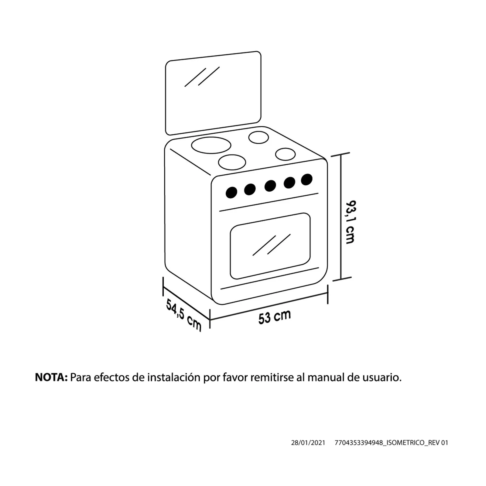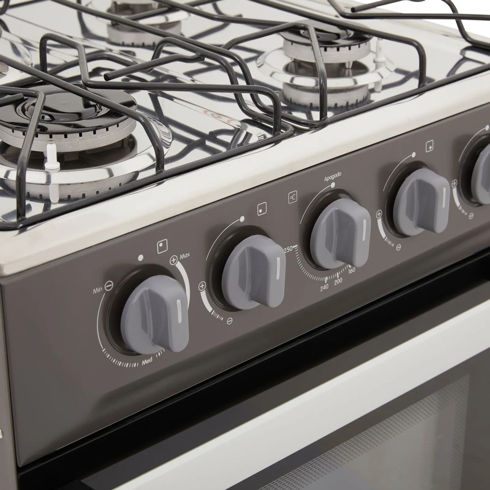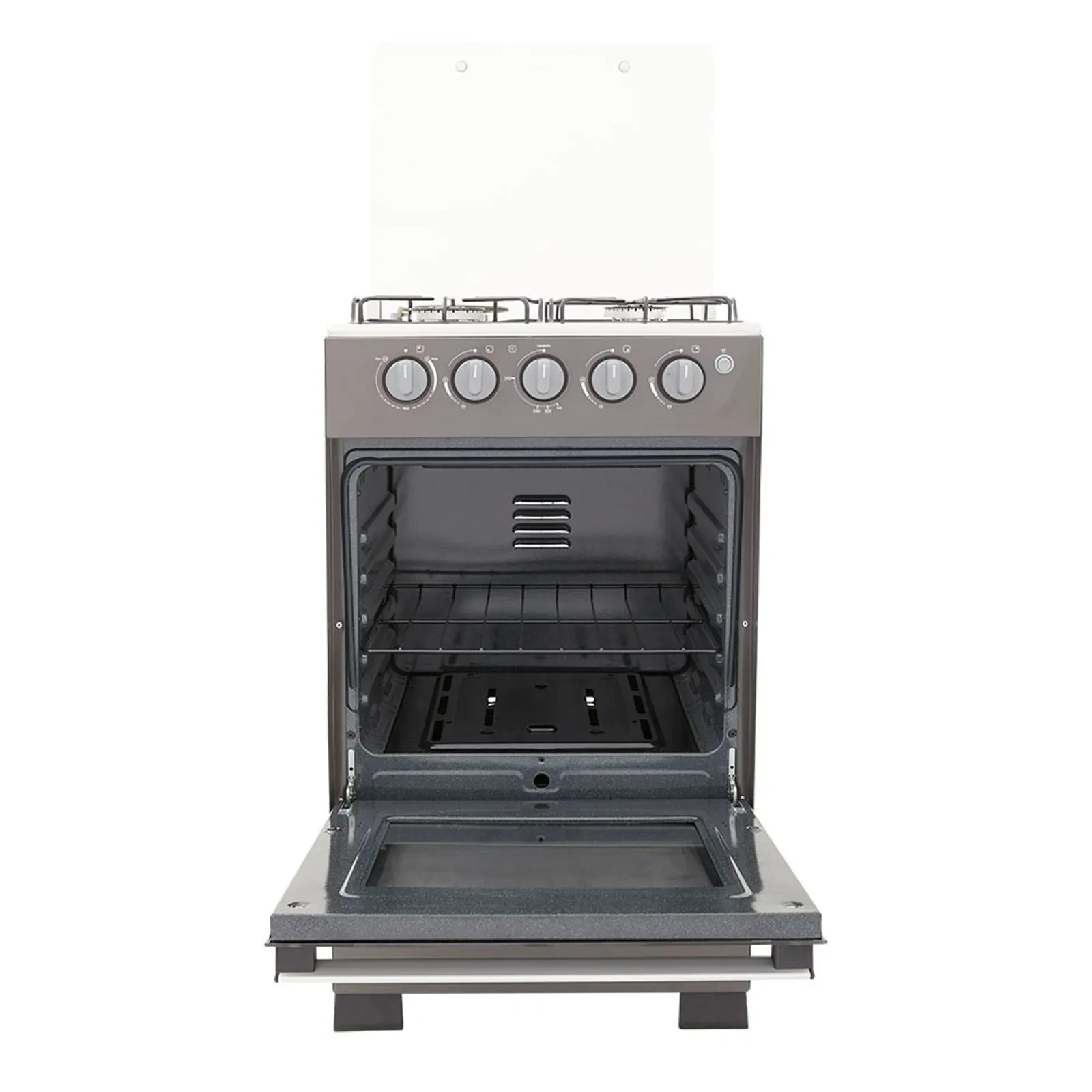 Espaldar de vidrio, 2 quemadores semirápidos, 1 quemador rápido a gas y 1 resistencia eléctrica, 5 perillas, evita fugas de gas en el horno (termoseguridad), diferentes fuentes de calor, visor del horno 65% más amplio,parrilla antideslizante