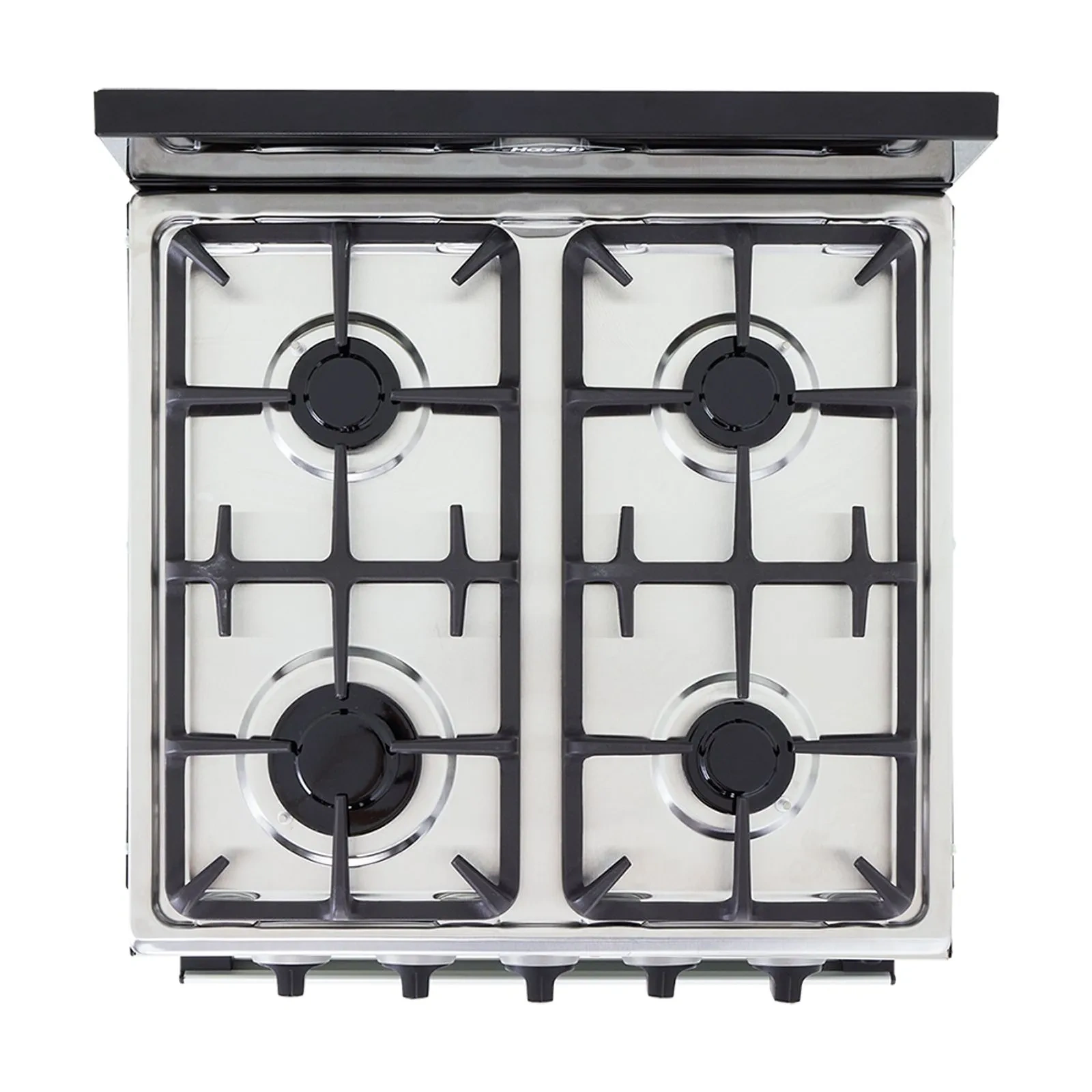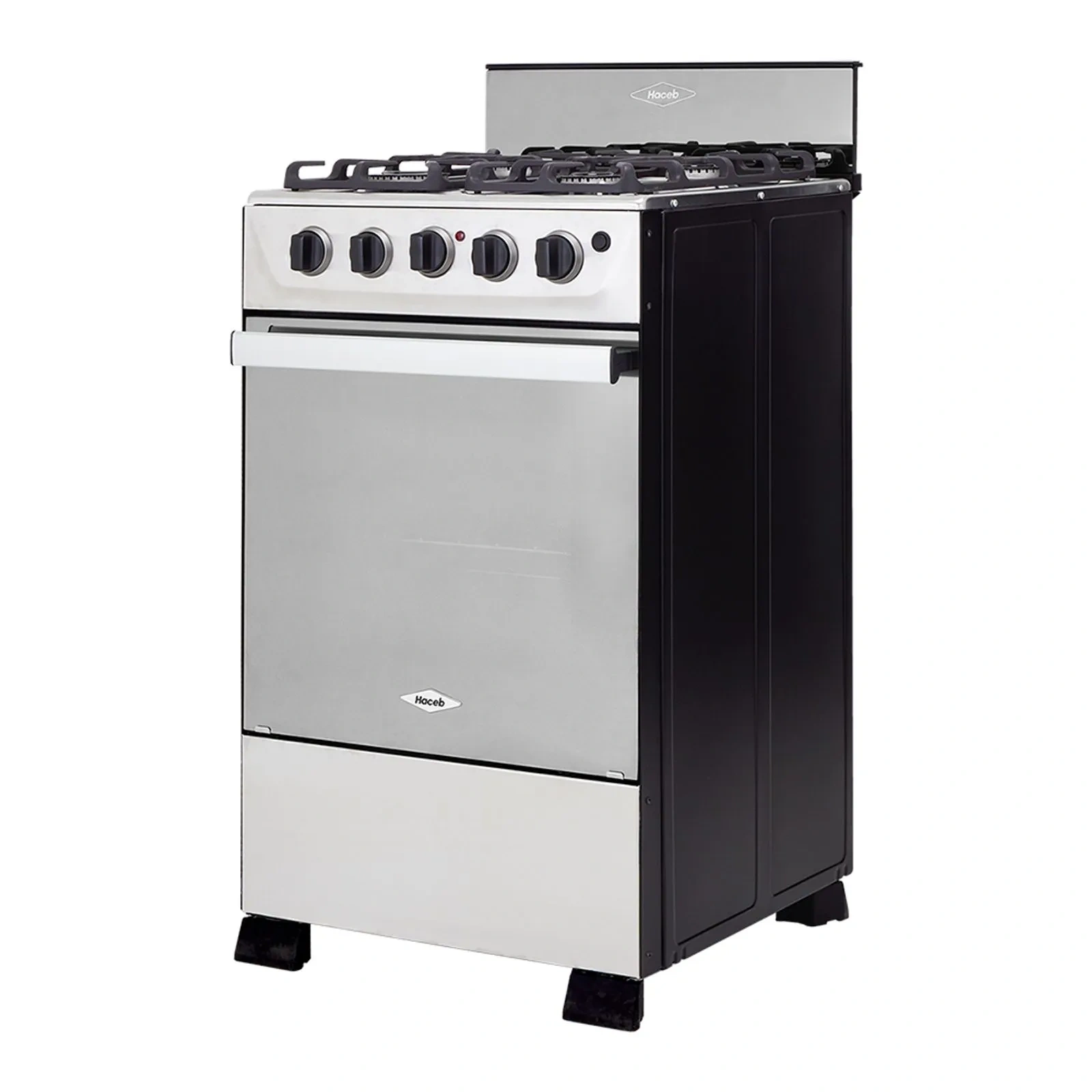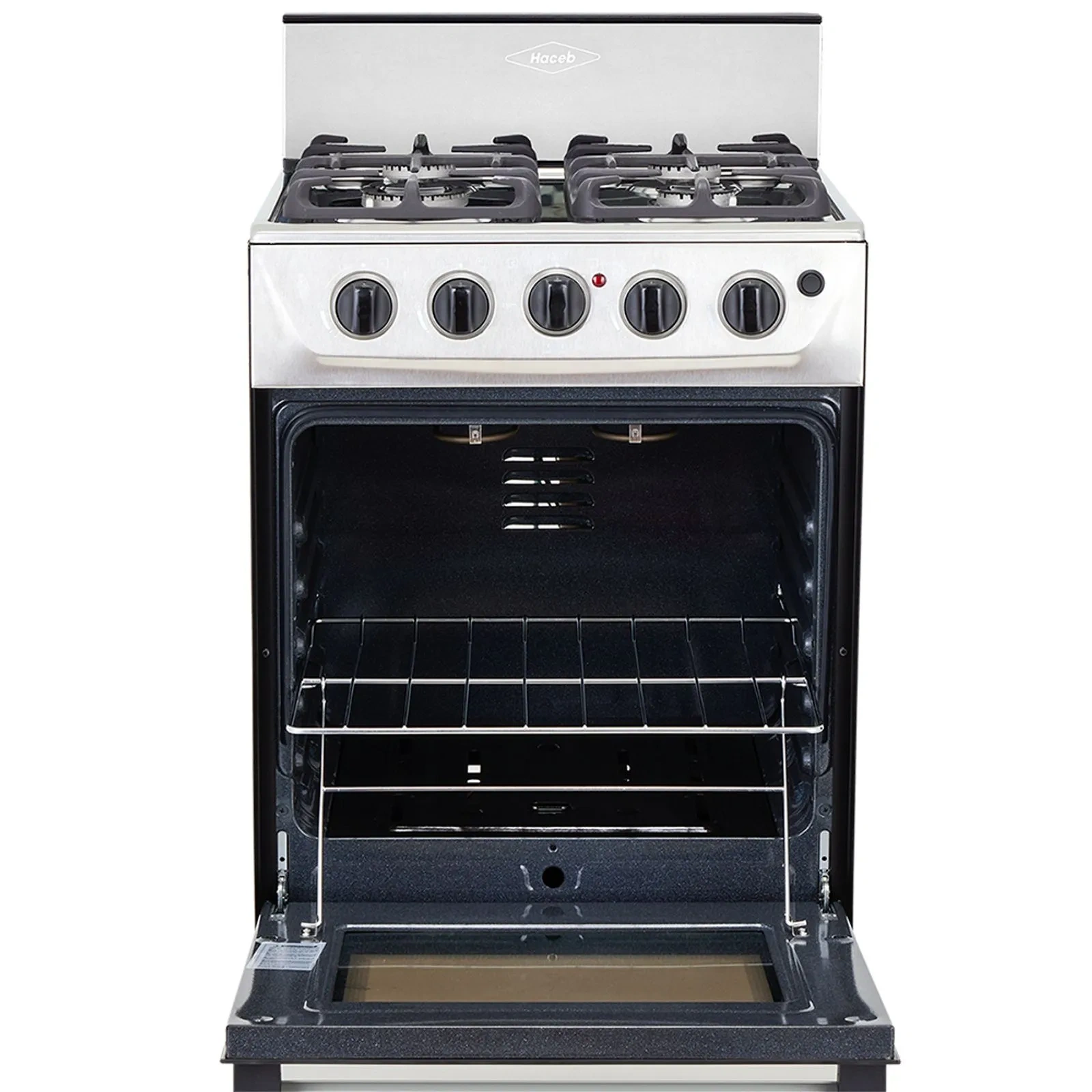 1 quemador rápido y 3 semirápidos, 5 perillas, entrepaño retráctil, gratinador en curvas,parrilla en hierro fundido, fogones de diferentes tamaños,puerta del horno en vidrio espejo.