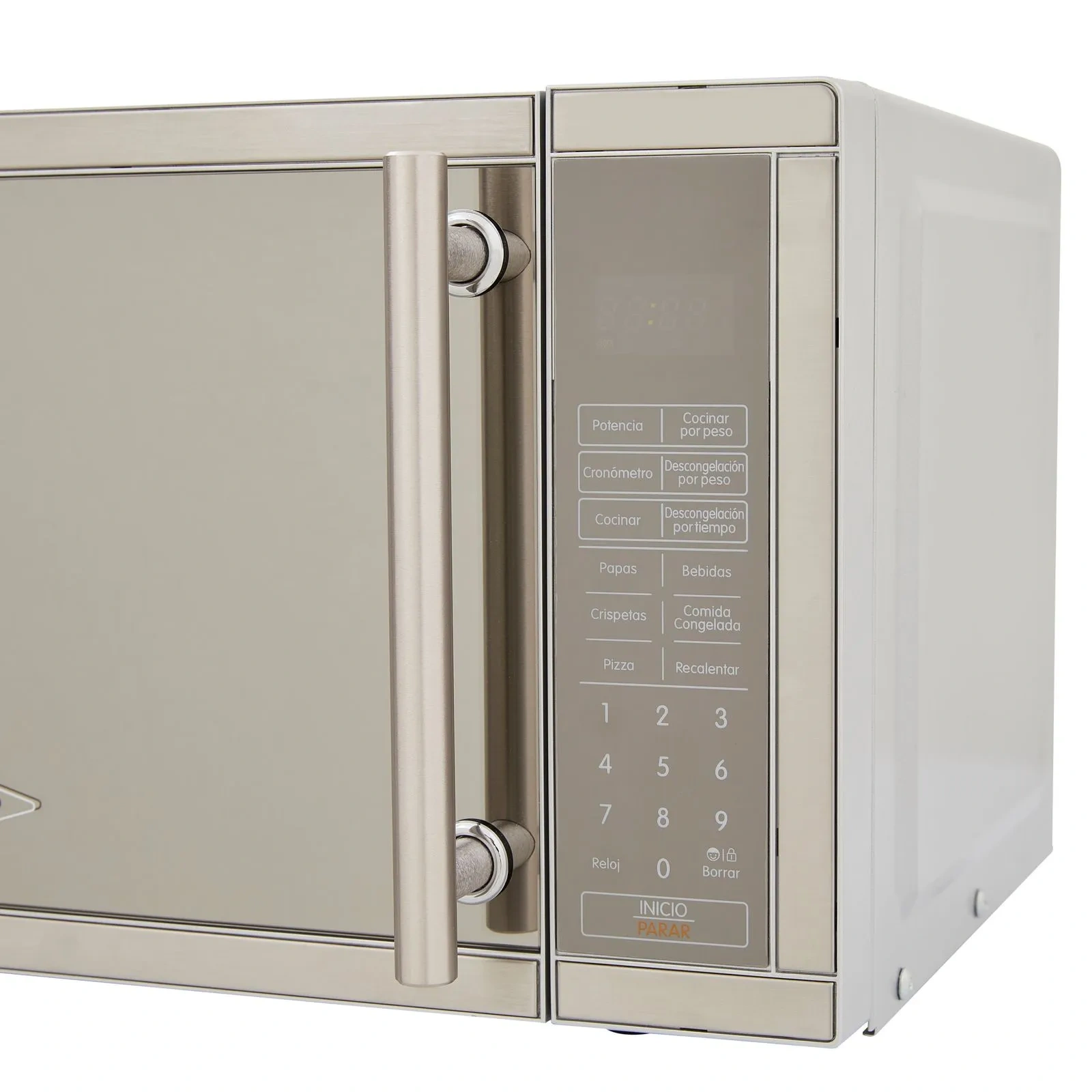 Potencia de entrada 1050W / Potencia de salida 700W / Frecuencia 2450 MHz / Tiempo maximo de operación 99min – 99seg / Luz interna / Panel digital / Apertura por medio de manija.