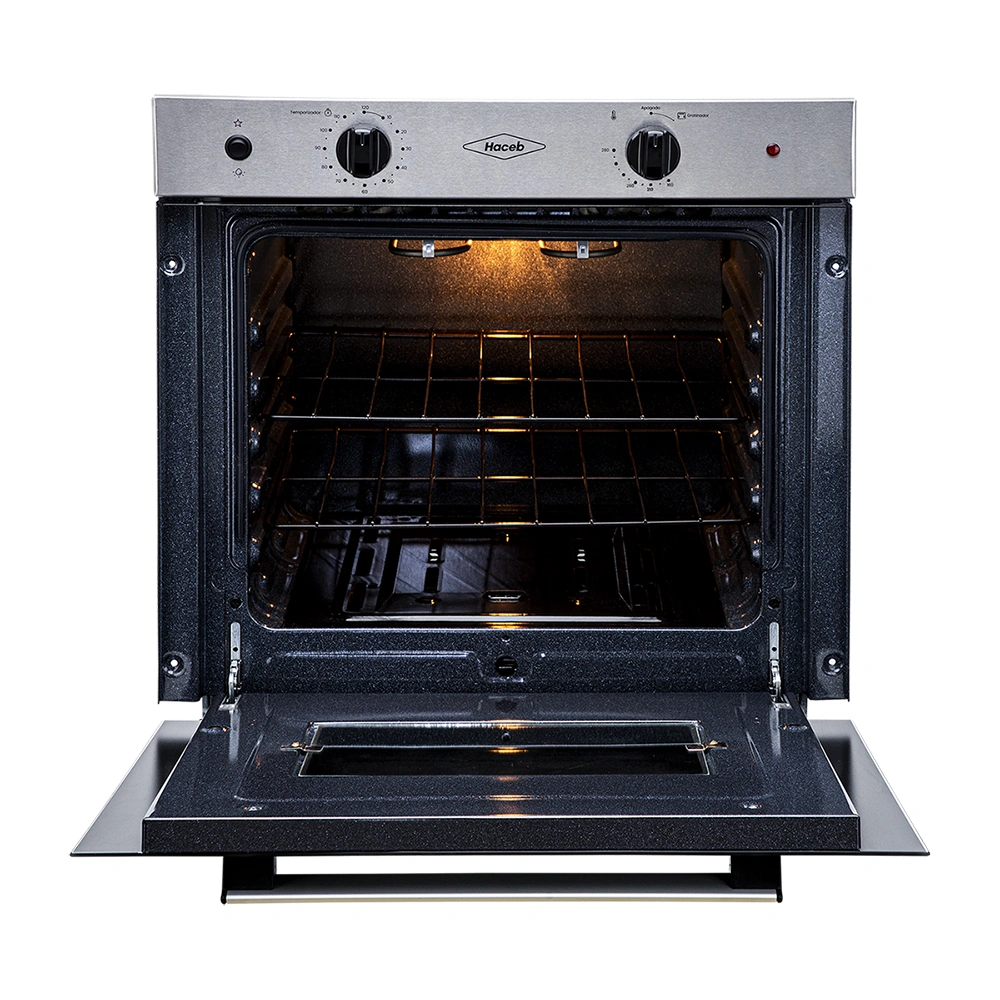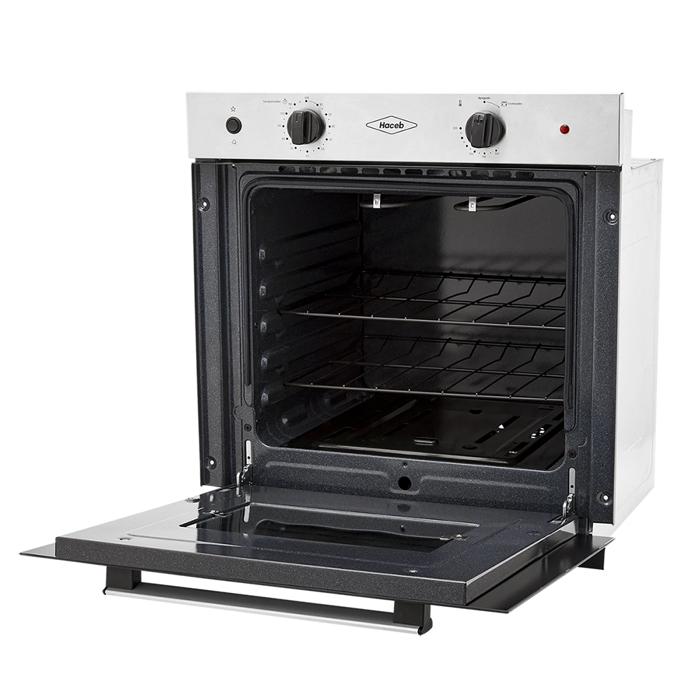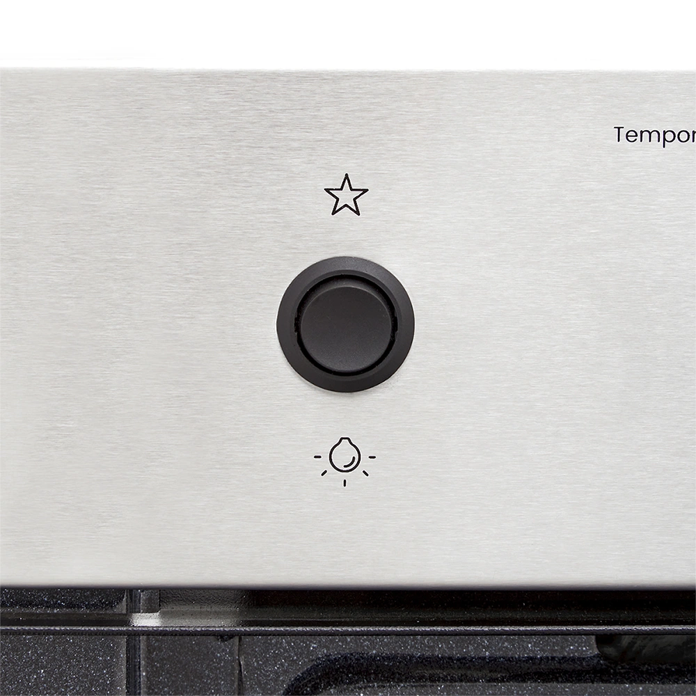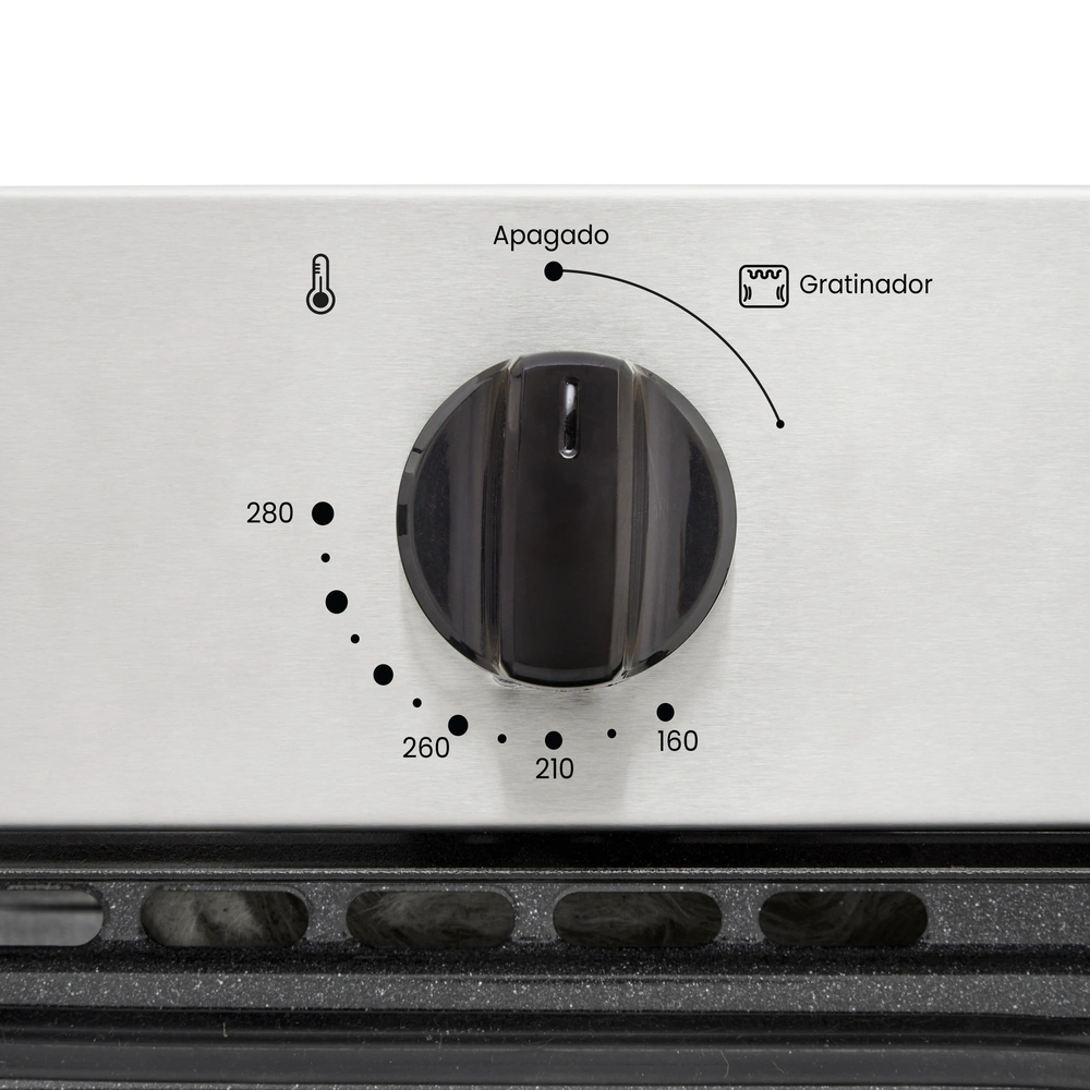 Temporizador mecánico, Sistema interbloqueo, Gratinador eléctrico en curvas, 2 entrepaños esmaltados, Iluminación interna, Encendido eléctrico, Sistema Termoseguridad.