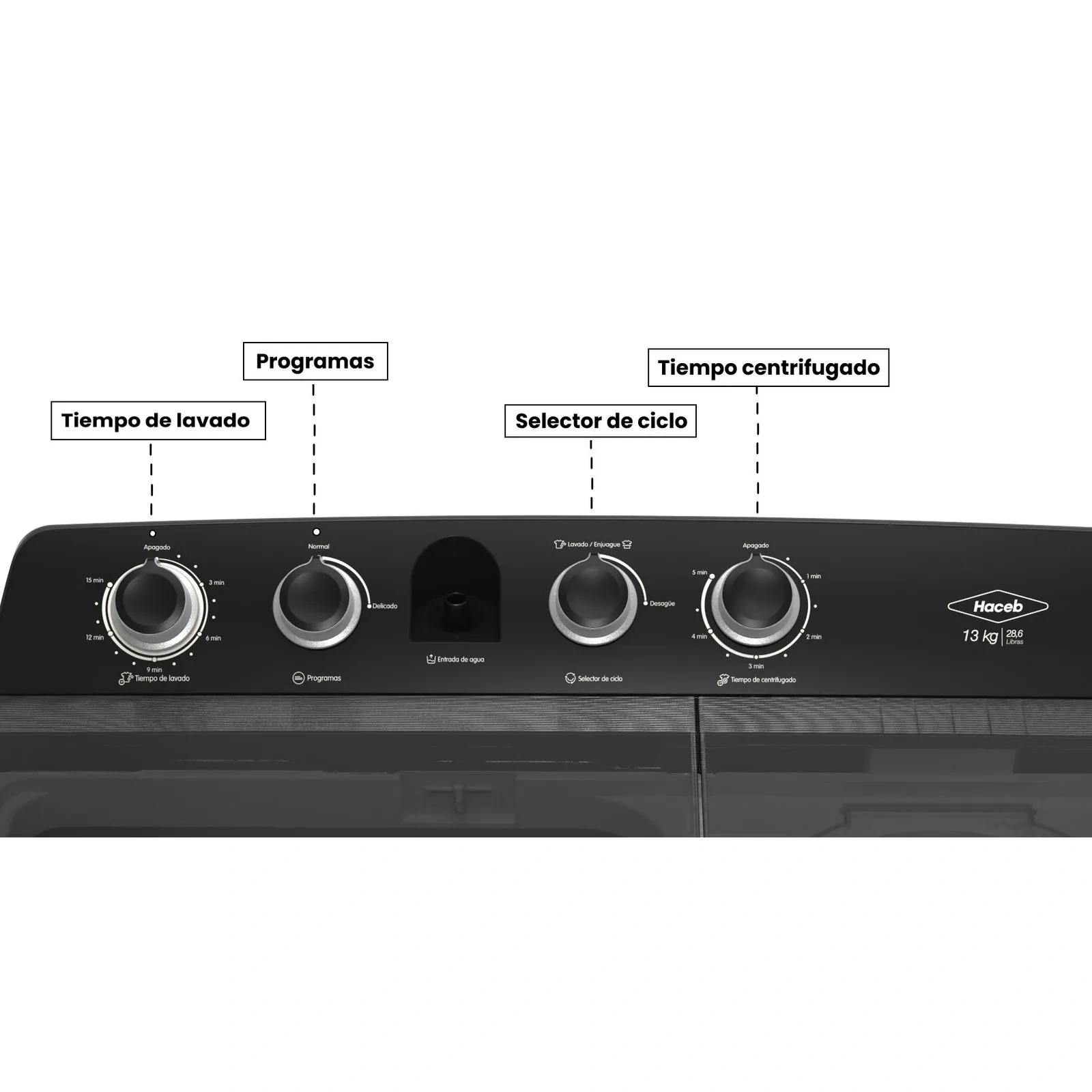Lavado por corrientes, Lavado simultáneo (Lava y centrifuga),Tapa superior removible, Material anticorrosivo y Filtro de malla